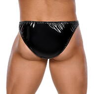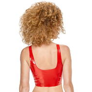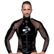 - Short, tight-fitting vinyl jacket with a stand-up collar