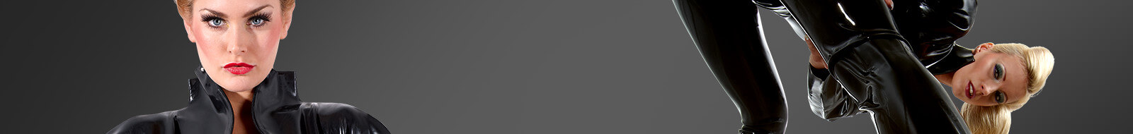 • Jumpsuit met hoge hals en lange mouwen gemaakt van latex