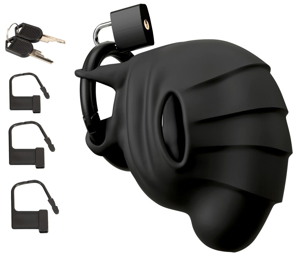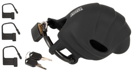 De siliconen kuisheidskooi Cock & ball van Black Velvets omsluit de penis en testikels op een spannende manier. De flexibele kooi is perfect aangepast aan de mannelijke anatomie en is gemakkelijk aan en uit te trekken. Het fluweelzachte silicone past perfect en comfortabel. Een stevige ring houdt de lichtgewicht siliconen kooi stevig op zijn plaats. Urineren is mogelijk via een lagere opening. De penis/testikel kooi is natuurlijk afsluitbaar - 1 hangslot met sleutels en 3 wegwerpsloten zijn inbegrepen.
