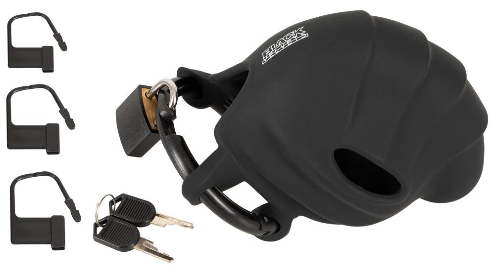 The silicone Cock & ball cage from Black Velvets imprisons the cock and balls in an exciting way. The flexible cage adapts perfectly to the male anatomy and can be easily put on and taken off. The velvety soft silicone clings wonderfully and comfortably to the cock and balls. A sturdy ring keeps the lightweight silicone cage in place. There is a hole at the bottom for urinating. The cock/ball cage can also be locked – 1 padlock with keys and 3 single-use padlocks are included.