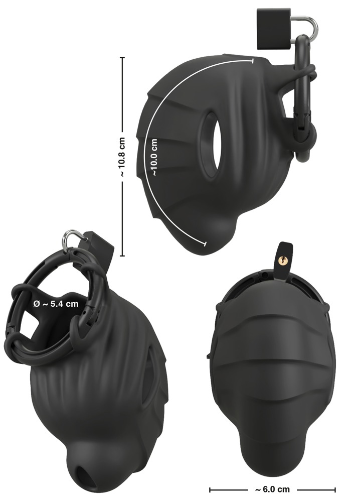Der Silikon-Keuschheitskäfig Cock & ball cage von Black Velvets schließt Penis und Hoden aufregend ein. Perfekt auf die männliche Anatomie abgestimmt, lässt sich der flexible Käfig leicht an- und ablegen. Das samtig softe Silikon passt sich optimal und komfortabel an. Ein fester Ring hält den leichten Silikon-Käfig fest und sicher am Gemächt. Durch eine untere Öffnung ist urinieren möglich. Selbstverständlich ist der Penis-/Hodenkäfig abschließbar – 1 Vorhängeschloss mit Schlüsseln sowie 3 Einwegschlösser sind inklusive.