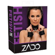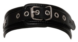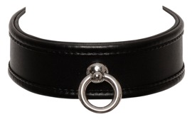 4 cm breite, hochwertig gearbeitete Halsfessel aus Leder von Wild Thing by ZADO mit dekorativem Ring an kleinem Steg. 45 cm lang, mit Schnallenverschluss verstellbar von 32-50 cm.