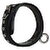 Collare largo 4 cm, finemente lavorato con anello decorativo attaccato al piccolo filo di legamento. Ca. 45 cm di lunghezza, con chiusura a fibbia regolabile da 32-50 cm. Pelle liscia nera.