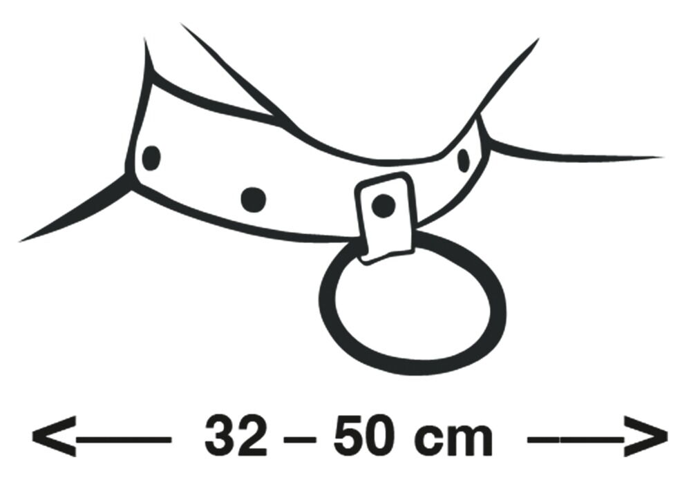 4 cm bred, högkvalitativ halsboja med snygg ring på en liten förbindelse. 45 cm lång med spännen som kan justeras från 35-50 cm.