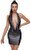 Kort kjole fra Cottelli PARTY i glitrende sølvglans. Smalt skåret fasong med ekstra dyp, fossende utringing som kun holdes sammen av ei dekorativ strasspenne. Halterneck og deilig ryggfri. Deilig elastisk stoff som gir behagelig passform.