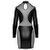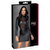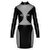 Tight, short, long sleeve dress in a classy black matte look with transparent powernet elements at the front, back and the sides of the skirt. Soft and elastic for a tight fit and high wearing comfort. The standing collar features 2 buttons at the back of the neck and a small cut-out underneath.