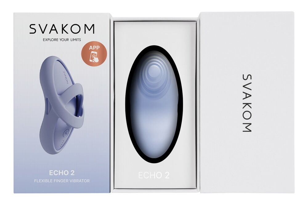 Mały, lekki, elastyczny wibrator na palec Echo 2 od SVAKOM jest idealny do stymulacji zewnętrznych stref przyjemności podczas zabawy w pojedynkę lub w parze. Rozciągliwe silikonowe pętle można bez wysiłku wsunąć na palec, umożliwiając idealne dopasowanie ergonomicznie zakrzywionej nakładki. Ułatwia to prowadzenie i użytkowanie. Jedwabiście miękki silikon i delikatne rowki dopasowują się do skóry i punktów erogennych. Silikonowy rękaw na palec można również zdjąć, aby używać Echo 2 jako gładkiego wibratora.