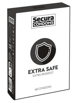 Transparante, extra scheurvaste condooms Extra Safe van Secura Condooms voor langer plezier in bed! De dikkere wanddikte zorgt voor minder merkbare wrijving op de eikel en kan daardoor het genot verlengen. De condooms bieden ook extra veiligheid. Met een vochtinbrengende coating op siliconenbasis voor langdurig wrijvingsvrij plezier. Veganistisch. Geur- en smaakloos.