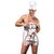 Biały, wiązany fartuch materiałowy z rysunkowym nadrukiem nagiego męskiego ciała z penisem w stanie erekcji. 100% poliester.