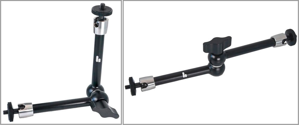 Bras articulés avec vis de ¼". Chacun de 13 cm de long, 2,5 cm de large.