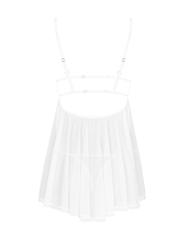 Drømmer du om en nat fuld af spænding? Med denne Heavenlly babydoll vil du (ikke så) uskyldigt tænde bålet i soveværelset. Forestil dig, hvor blødt og sensuelt stoffet vil smyge sig om din krop, og hvordan de blomstrede blonder vil fremhæve dine bryster på en sexet måde. Den vil få dig til at se og føle dig utrolig himmelsk ... hvis du tør give efter for dens tiltrækningskraft.