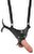 Aftagelig hudfarvet penisdildo på et sort komfort-harnisk med seler, som kan justeres i størrelsen. Hul indvendig, så penis kan indføres i dildoen.