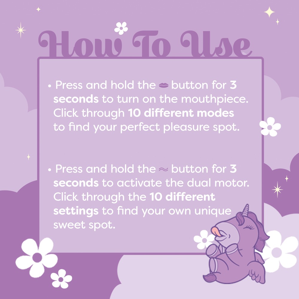 - Lay-on vibrator in a cute unicorn design