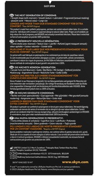 I preservativi trasparenti, umidi e ultrasottili Manix SKYN King Size sono extra-large con una lunghezza di 190 mm (di solito 180 mm) e una larghezza nominale di 56 mm (di solito 52 mm). Il materiale polisoprenico dei preservativi si chiama Skynfeel ed è più morbido ed elastico del lattice, ma altrettanto stabile e senza il classico odore di lattice. È quindi ideale per le persone allergiche al lattice. Vegano.