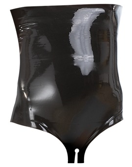 Svart trosa med öppen gren. Material: latex. Kan framkalla allergier.