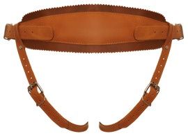 Strap-on jock från ZADO av slätt läder i typisk naturlook med silverfärgade metalldetaljer. Dubbla skikt och med lätt vaddering baktil för maximal komfort. Kanterna är noggrant sydda. Naturlädret är inte färgat/vaxat och kan med tiden utvecka en fin "used look".