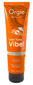The edible, water-based Vibrating Intimate Gel Lube Tube Vibe! from Orgie has a tingling effect and an irresistible flavour – a tropical, fruity Sex on the Beach cocktail flavour. The gel has a velvety, non-sticky texture for long-lasting & comfortable pleasure during solo fun, foreplay and intercourse. During oral sex, the cocktail flavour tickles the taste buds, while the tingling vibration effect (level 1/10) adds an extra layer of excitement.