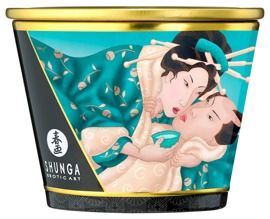 Luksusowa świeca do masażu Sensual marki Shunga o delikatnym subtelnym zapachu wyspiarskich kwiatów, który po zapaleniu świecy przyjemnie rozchodzi się po pomieszczeniu. Wosk ze świecy topi się w przyjemnie ciepły odżywczy olejek do masażu, który może być stosowany bezpośrednio na skórę do zmysłowego i namiętnego masażu partnerskiego. W 100% naturalny olejek odżywia skórę i sprawia, że staje się ona jedwabiście miękka i elastyczna dla długotrwałej przyjemności masażu