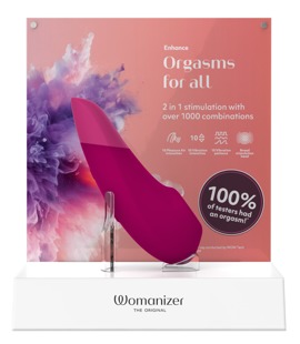 Llame la atención sobre el Womanizer ENHANCE con la nueva combinación única de tecnología Pleasure Air y vibración We-Vibe ultra potente - con este kit de merchandising de varias piezas que consta de: