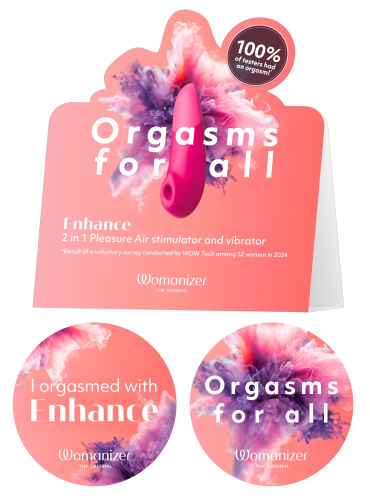 Attirate l'attenzione sul Womanizer ENHANCE con la nuova combinazione unica di tecnologia Pleasure Air e vibrazione We-Vibe ultra forte - con questo kit di merchandising composto da più parti: