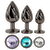 Набор металлических пробок с бриллиантами от ANOS с 3 металлическими пробками разных размеров и веса. Для анальной стимуляции и идеальной тренировки растяжки. Каждая пробка украшает анус драгоценными камнями разного цвета на безопасной для анального отверстия пробке. Металлические пробки со спиральными ребрами можно нагревать или охлаждать для игры с температурой.