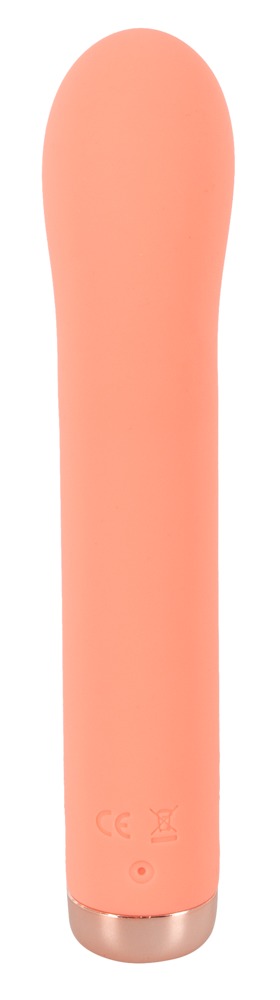 Mini vibratore per il punto G di peachy! dal colore pastello, con un design idealmente curvo e una testina rigonfia per una stimolazione mirata del punto G di lei o del punto P di lui. le 10 modalità di vibrazione offrono una varietà di divertimento per il gioco vaginale e anale e possono essere facilmente regolate verso l'alto e verso il basso con la semplice pressione di un pulsante. Il silicone di alta qualità con texture morbida al tatto assicura una sensazione molto piacevole sulla pelle durante il gioco e le coccole. Ricaricabile - cavo di ricarica USB incluso.