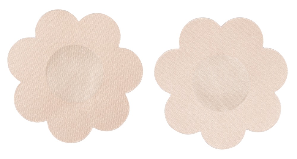 Hudfargede, myke klistreblomster i stoff/silikon til å klebe på brystvortene. Dekker brystvorter og området rundt. Formet som en blomst.