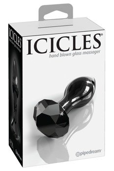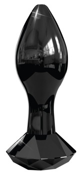 Cone-shaped black butt plug with a stopper made out of hand-blown glass. The stopper is in the shape of a diamond. Odourless, anti-allergenic and very hygienic it's really easy to clean – it can even be put in the dishwasher. Tip: to increase the pleasurable feeling even more, it can be warmed up in warm water or cooled down in the fridge. The item will last a lifetime if it's looked after properly.