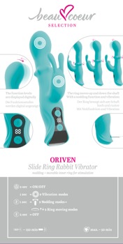 De energieke ORIVEN Slide Ring Rabbit Vibrator van beau cœur verwent tegelijkertijd van binnen en van buiten. En niet alleen met krachtige vibraties speciaal voor de G-zone en clitoris. Hij masseert ook intensief de vagina met zijn dynamische knikkende kop en de kogelring (slide ring) in de schacht die tegelijkertijd op en neer glijdt. Dubbele stimulatie op een nieuw niveau voor unieke sensaties van genot - en hoogtepunten!