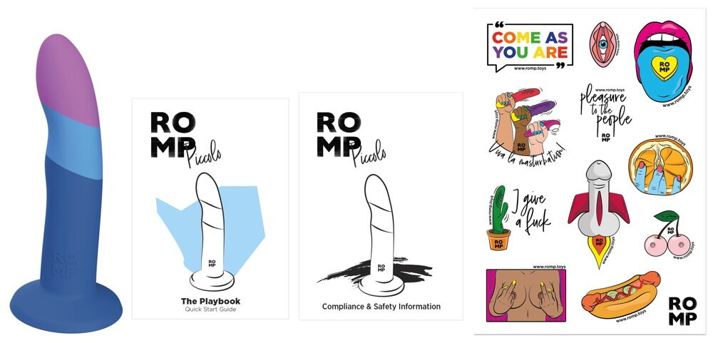 Pirrende bølget dildo Piccolo fra ROMP i herlige farger. Den kraftige sugefoten gjør det enkelt å feste dildoen på glatte overflater slik at du kan nytte den handsfree. Sugefoten gjør også dildoen kompatibel med en masse strap-ons og harness. Dildoen er perfekt buet til pirring av G-punkt eller prostata. Laget av soft silikon som gir dildoen smidig fasthet og fleksibilitet. I nedre del er skaftet hult, og her kan en vibrobullet plasseres (medfølger ikke).