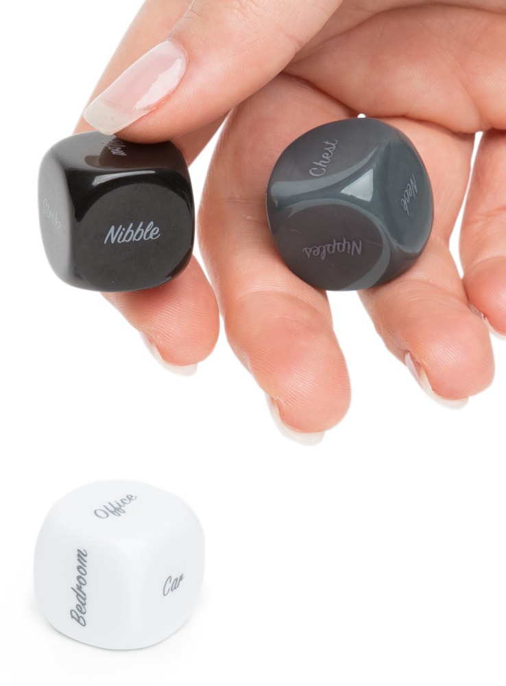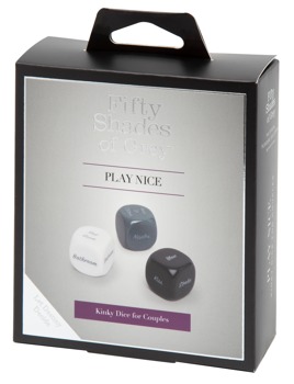 Detta 3-pack tärningsset Play Nice Kinky Dice for Couples från Fifty Shades of Grey i ädel design är den perfekta inspirationen för långa förspel! Ett tärningskast räcker: den grå tärningen avgör kroppspartiet, den svarta tärningen avgör vad som ska göras och den vita tärningen avgör vilken plats. Inklusive värdefulla tips till en massa lekmöjligheter.