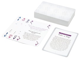 Эти карточки вдохновения Play Nice Talk Dirty из "Пятидесяти оттенков серого" в стильном оформлении - идеальное вдохновение для грязных разговоров, ролевых игр и возбуждающих действий! Каждая из 52 игральных карт содержит цитату из трилогии "Пятьдесят оттенков", соблазнительное высказывание и соответствующее действие. Разделены на 4 цвета: от удобных для начинающих до более смелых высказываний и действий. Для дополнительного эффекта джокеры могут быть вытащены для реализации ваших собственных идей.