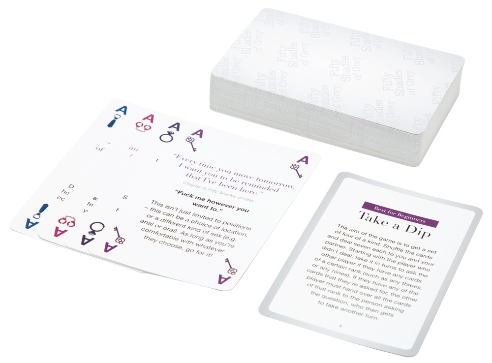 - Jede Karte mit FSOG-Zitat, Dirty Talk-Spruch & Aktion