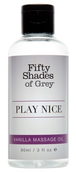 The luxurious, high-quality Play Nice Vanilla Massage Oil from Fifty Shades of Grey has a sensual vanilla scent which intensifies and whets the sexual appetite and the senses! Perfect for exploring a partner's body during a massage or for enjoying long-lasting foreplay. 90 ml.