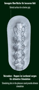 Very easy-to-use, transparent Pocket Masturbator Speed from Stroker with an exciting dotted texture inside. The flexible masturbator has a dotted surface as well and this means that it won't slip out of the hand during hot solo sessions.
