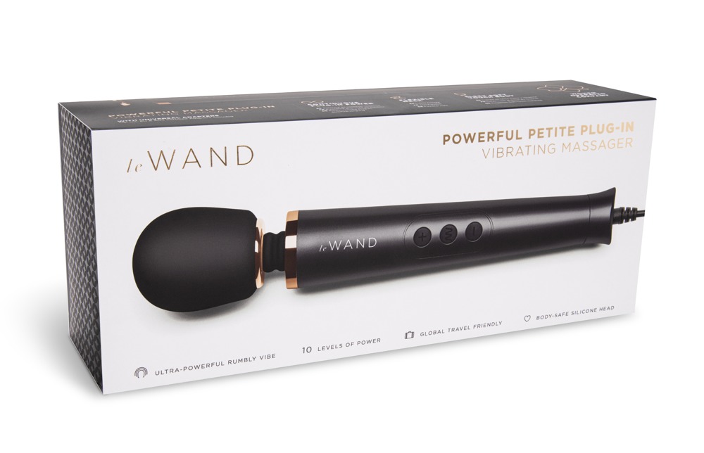 The wired luxury massage wand Powerful Petite Plug-in Vibrating Massager from Le Wand delivers intense massage pleasure with non-stop power. In the classic wand design but smaller, lighter and more compact! 6 vibration modes in 10 intensities enable customised massage delights that can be easily controlled with the 3 button controls directly on the handle.