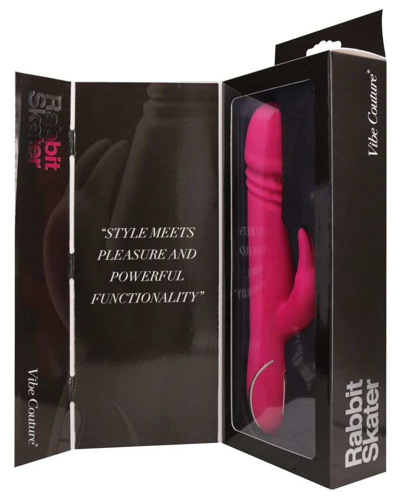 This beautifully designed pink rabbit vibrator provides pure pleasure. It has a velvety soft surface made out of silicone that feels extremely realistic. Not only does it look good because of its wonderful shape and decorative silver-coloured parts, but it can also do its job well! There is a motor inside the small rabbit-shaped clitoris stimulator with nose and movable ears. The motor provides powerful vibrations (with 7 different patterns). However, the real highlight is a bit further up: the round G-spot tip with stimulating grooves underneath has an integrated thrust and vibration function. The functions have three speeds and intensities. You can also enjoy the Rabbit Skates in the bath or shower because it is waterproof! A lover that just might get addictive!