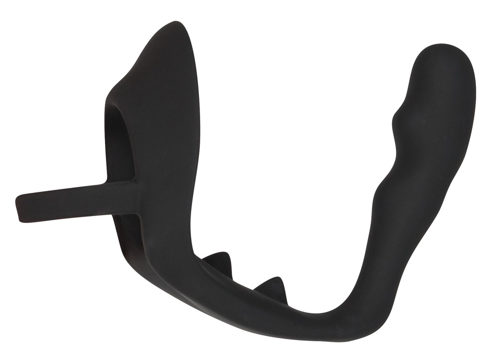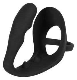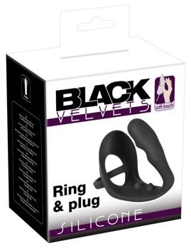 This black cock ring not only scores points with an additional butt plug, but also with a perineum bridge that has stimulating its on it. Pure pleasure!