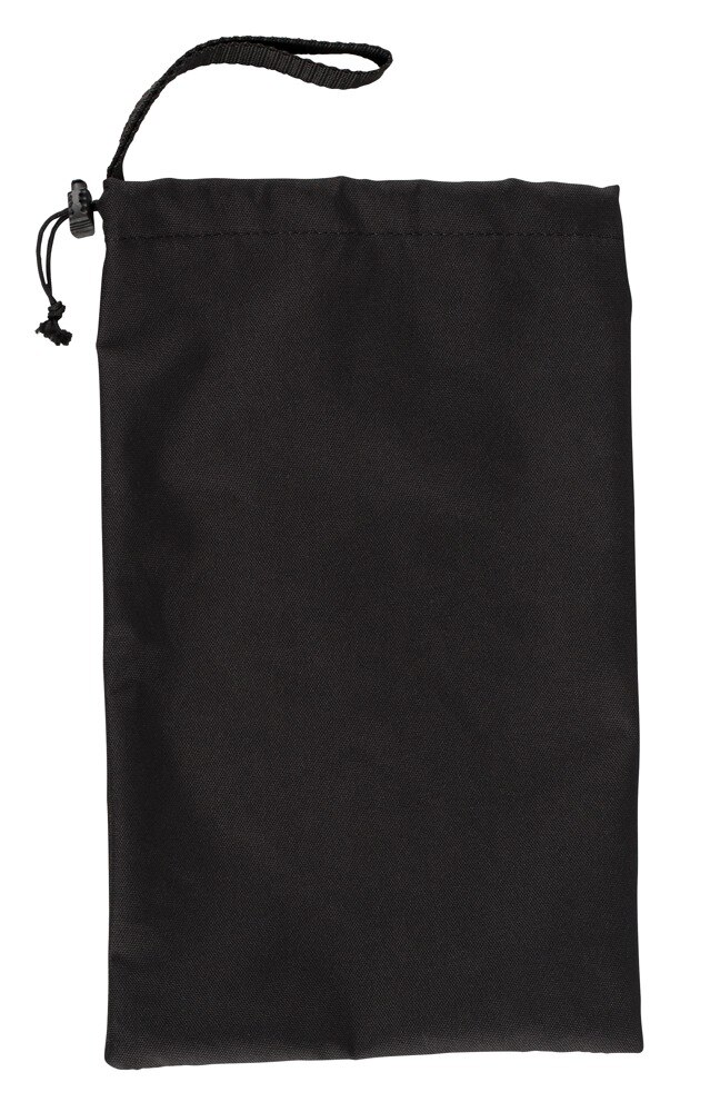 Schwarzer Aufbewahrungsbeutel mit Halteschlaufe. Ca. 24 x 35 cm groß.