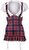 Denna miniklänning är den perfekta skoluniformen. Upptill en vit blus med korta ärmar, krage och djup urringning samt en påsydd, blå-röd-rutig kjoldel. Axelbanden kryssas i ryggen. Med kort, veckad kjol och två vita strumphållare framtill. Material: 92% polyester, 8% elastan.