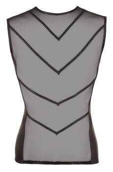 This shirt is made out of beautiful shiny matte material. The material is thin but stretchy. The shirt stands out because of its powernet inserts and narrow, stitched stripes at the front. The narrow, stitched neckline adds the finishing touch to this extravagant look. This muscle-emphasising shirt will make anyone look good - even if they wear a larger size!