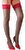 Sensuales medias de liga con encaje rojo para sujetar. 20 den. Pie ligeramente preformado. Certificado por Oeko-Tex.
