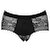 Black panties with a strap-on O-ring from Bad Kitty with beautiful floral lace.