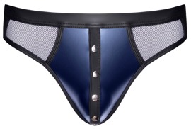 The elegant shimmering thong from Svenjoyment is dark blue and has exciting net inserts at the front. It has decorative silver-coloured press studs on the pouch that can be used to open it. The thong is soft and stretchy, and it also has a stretchy fabric-covered waistband as well for a very comfortable fit.