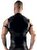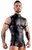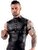 Trendy top af Svenjoyment Bondage i sort mat look med nitter (ikke aftageligt). Harnisk på siden med ringe, hvor de lukkede lænke rem til armene kan fastgøres. Lænke remmene i mat look har justerbare velcrolukninger.