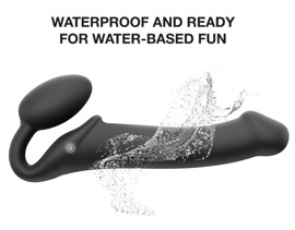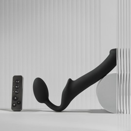 Lo Strap-On vibrante pieghevole di Strap-on-me vi coccola con intense vibrazioni alla potenza di 3 per un versatile gioco in solitaria o per entrambi i tipi di giochi di ruolo, pegging e altro ancora. 3 potenti e silenziosi motori sono situati nel plug rigonfio, nella testa dell'impressionante asta e al centro per una potente stimolazione clitoridea. I motori possono essere controllati singolarmente tramite il pratico telecomando; il comando one-click consente di avviare e arrestare la stimolazione con la semplice pressione di un pulsante. 3 x 3 modalità di vibrazione, ciascuna con 3 intensità, offrono un divertimento vario, anche nella vasca da bagno e nella doccia, poiché il vibratore strap-on è impermeabile