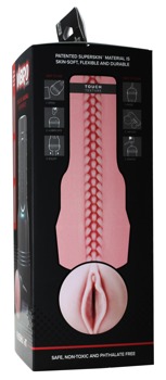 Pink and pleasurable vagina with a dotted sleeve in a black casing. Simply insert the penis into the tight sleeve, turn on the vibrations and enjoy pure pleasure. Complete length approx. 25 cm. Material TPE (Superskin). Batteries, instructions and lubricant sample included.
