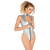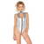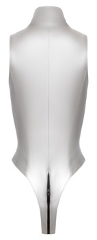 Close-fitting cut with high leg cut-outs and extravagant high collar with black lacing at the front. The black 2-way zip goes from the stylish neckline through the crotch to above the bottom. It can be opened from both sides.