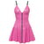 Kort kjole fra Black Level komplett i knallrosa lakk. Gjennomgående fôret, sølvfarget glidelås foran. Smalt skåret, med utsvingt asymmetrisk skjørtdel som er kortere foran enn bak. Formede skåler og svarte, justerbare stropper.