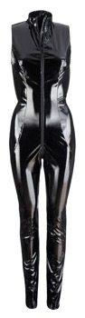 Kombinezon bez rękawów marki Black Level w całości wykonany z czarnego, patentowego połysku. Fason podkreślający figurę, z długimi, wąskimi nogawkami. Na uwagę zasługuje praktyczno-erotyczny dwukierunkowy zamek błyskawiczny, który biegnie od stójki przez krocze do dołu i można go szybko rozpiąć z obu stron.